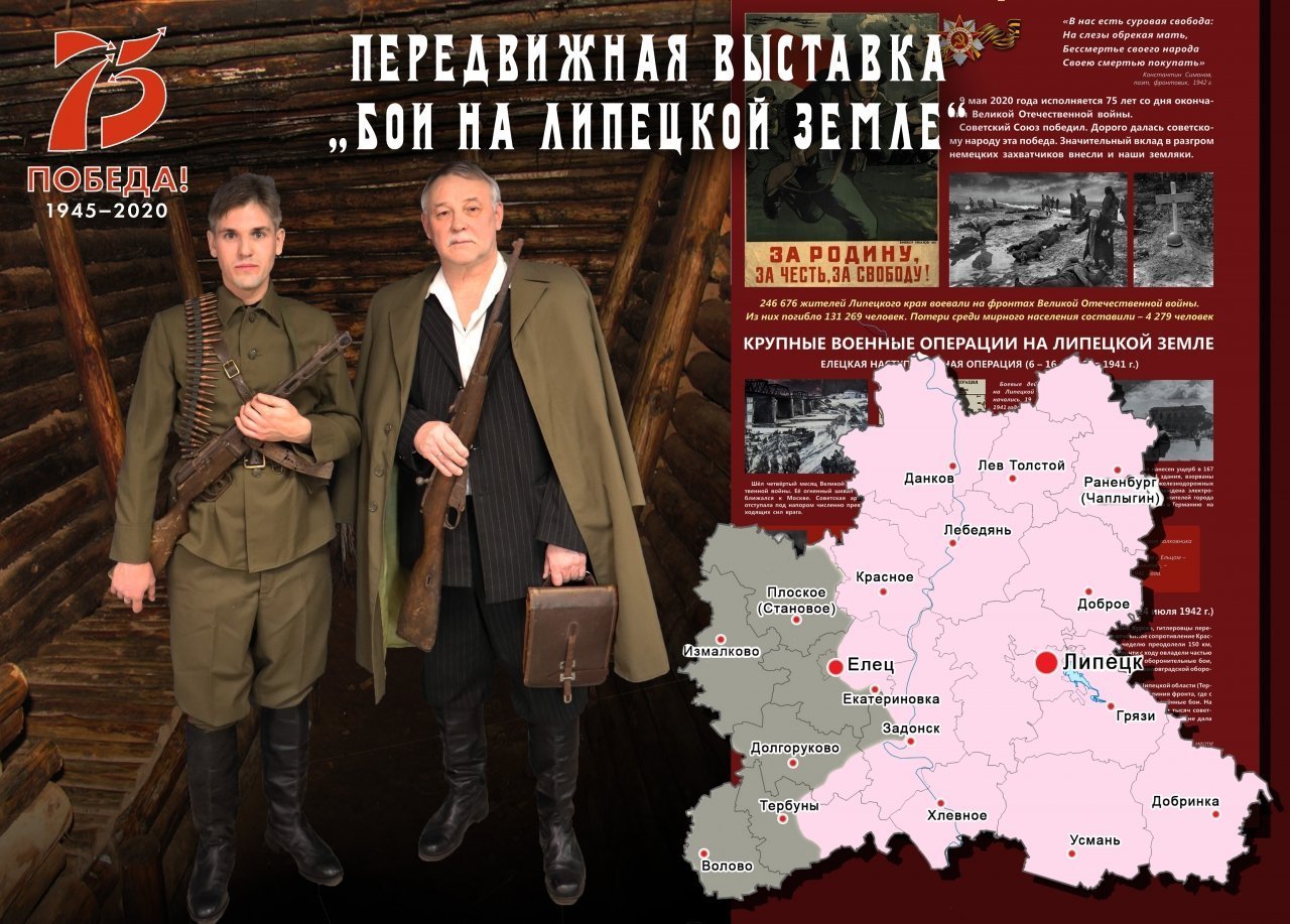Передвижная выставка «Бои на Липецкой земле» знакомит с военными операциями, проходившими на территории Липецкого края.