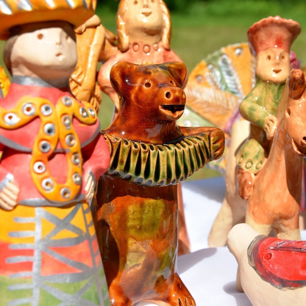 Для неё ярмарочное раздолье по-настоящему родное! Многие десятилетия глиняные петушки и жаворонки, индюки и быки продавались именно на ярмарках. Хоть в стародавние времена, хоть в годы дворянского великолепия на липецком курорте, хоть и в наши дни. На этот праздник мы привезём дружное семейство глиняных игрушек.