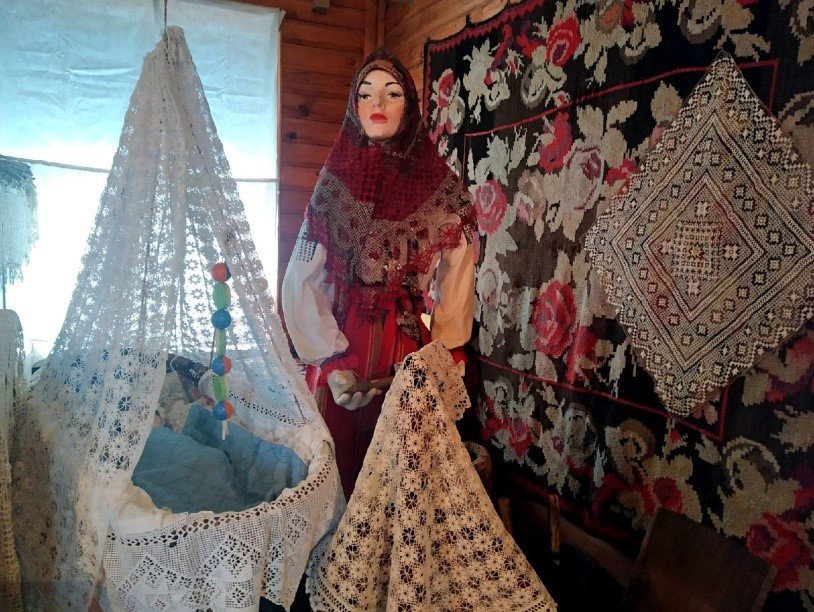 Кружевные воротники, скатерти, зубчатые кружева подзоров и полотенец – все бережно хранится в музее. На выставке представлено более 30 работ мастериц нашего края.