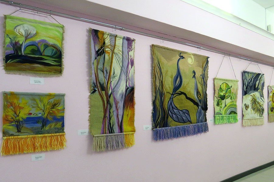 На выставке представлены панно в технике сухого валяния. Работы выполнены по авторской разработке, когда в качестве основы, к которой приваливается шерсть, используется мешковина. Натуральная шерсть кардочес на жесткой щетке приваливается к мешковине с помощью специальной иглы с засечками – основного инструмента для войлоковаляния.