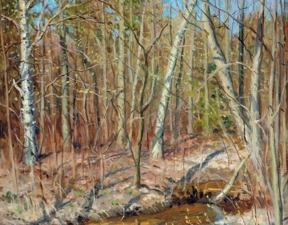 Все работы яркие, живые, теплые. Когда смотришь на полотно «Весенний ручей» Н.А. Сысоева, то слышишь плеск воды в ручье и ощущаешь свежесть весеннего ветерка. Картина «Холодная весна» Рассыпнова В.И. превосходно передает атмосферу провинциального городка и чистые цвета первой зелени.